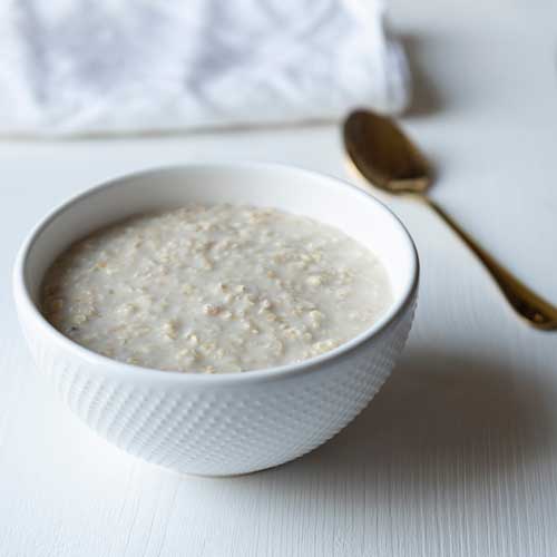 Főzd meg a zabpelyhet kétszeres mennyiségű (növényi) tejben/vízben. Egy csipet sót is tegyél bele.